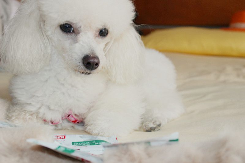 小巧有个坏毛病,出去散步时老是低着头寻找宝藏,他的宝藏就是一些碎骨头啦,臭鸭蛋啦......有一次吃了臭鸭蛋,嘴臭了几天,哎呀现在想想都难受!而且他速度奇快,等你发现就为时已晚了,好几次那些脏东西都硬生生的被他吞了回去!所以肠胃难免不好。又一次夜里连吐了3次,把我给吓的呀......但是益生菌效果确实很好,前几天小巧有点软便,吃了一天以后,就好了。