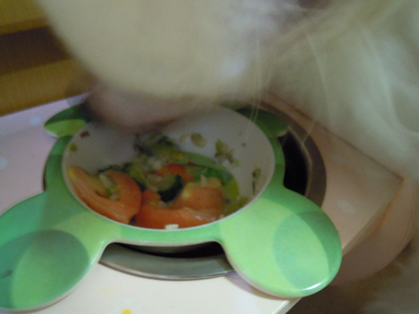 把谷等益生菌拌在吴氏宝贝的蔬菜包里,再加点酸奶再加点三文鱼粉。关于吴氏宝贝蔬菜包,下期在发帖讲述哦