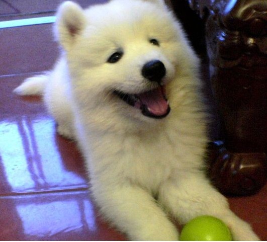 有着微笑天使的萨摩耶美容是少不了的,美容包括清洁眼睛和耳朵,剪指甲,洗澡等等。