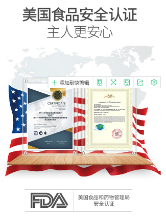 FDA其检测项目包括了产品成分以及配料的安全度、新鲜度、添加剂成分、是否进行正确标识等。能通过此认证就证明了该产品是安全、高品质、优秀的代表。